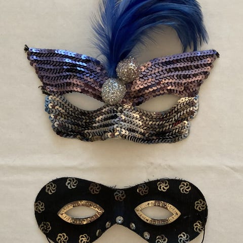 Paljett maske med fjær