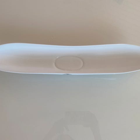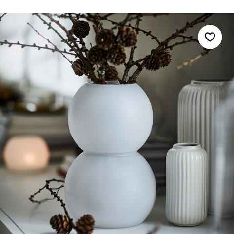 Selger lang, hvit vase i frostet glass fra IKEA.