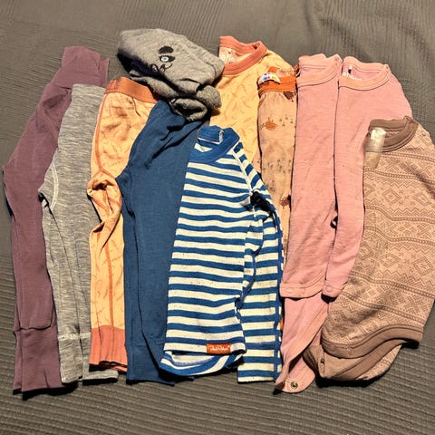 Noen flekker, men ingen hull. Perfekt ull til barnehagen.