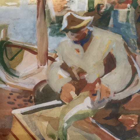 prydtallerken prydtallerk pyntetallerken veggpynt pynt dekorasjon fisker fiskere fiskeren fisherman fishermen Haut-relief grønn green
