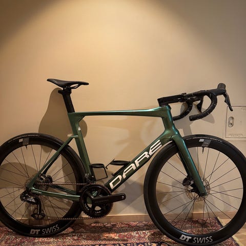Selger en svært rask og aerodynamisk Dare VSRu i størrelse Small. Dare er store i størrelsen, og denne passer ca. 167–180 cm. Jeg selv er 175 cm og sitter godt på den, men justeringsmulighetene er veldig gode