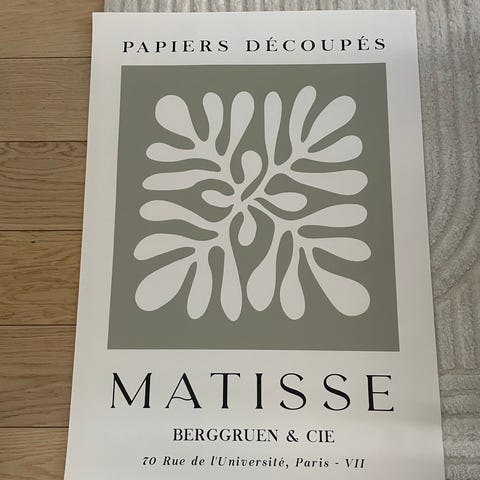 Selger dekorativ plakat med Matisse motiv. Størrelse 70cm x 50cm.