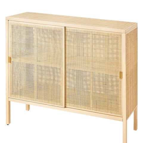 Selger et pent brukt skap i ubehandlet tre (plattformmodell fra Søstrene Grene i naturfarger, furu/rattang-inspirert stil). Dette praktiske skapet gir god oppbevaringsplass og passer fint i stue, soverom, barnerom eller gang. Skapet har et lyst, naturlig uttrykk som gir varme til hjemmet og er laget i trematerialer kjent for sin holdbarhet og tidløse look.