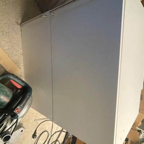 Hjemmelaget bardisk laget av IKEA overskap, eik finer og eik hobbyplater. Overflaten er hvitoljet. Det er montert et tappetårn i metall på benkeplaten. Dette kan følge med etter nærmere avtale om pris. Passer som bardisk i hjem, garasje eller hobbyrom. Bredde 122, høyde 110 cm.