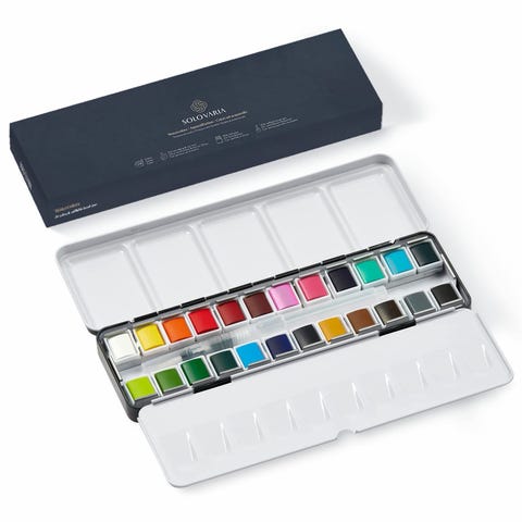 Alle panner har fortsatt maling, og settet passer både til hjemmebruk og reiser – ideelt for både nybegynnere og erfarne akvarellmalere.
