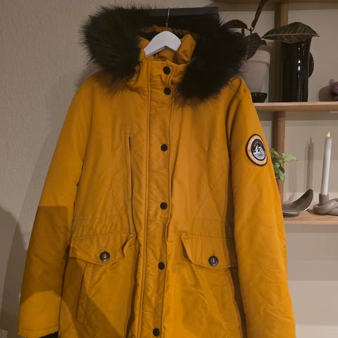 Jean Paul vinterjakke for dame i størrelse M. Jakken er oransje og laget i polyester. Den har glidelås og knappelukking i front, flere lommer med glidelås og klaff, samt justerbare mansjetter med knapper. Innvendig er jakken vattert for ekstra isolasjon. Passer som ytterjakke i kaldere vær.