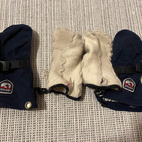 Meget pent brukt Hestra votter str 3, gode og varme votter.Ingen hull, slitasje