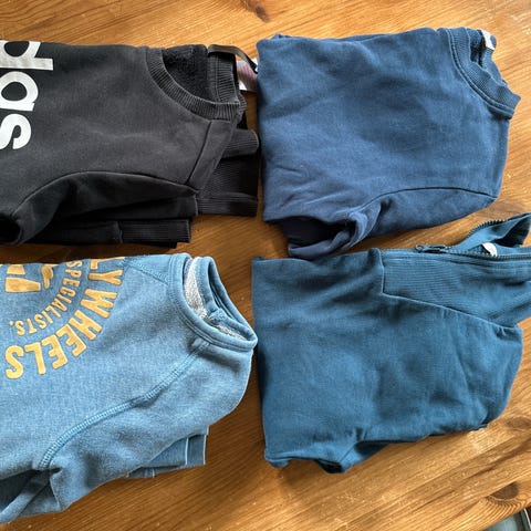 Fire gensere i str 122/128. Adidas genser er ren 128, men er brukt samtidig og er som kjent litt liten i størrelsen.