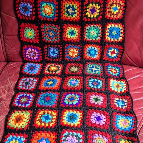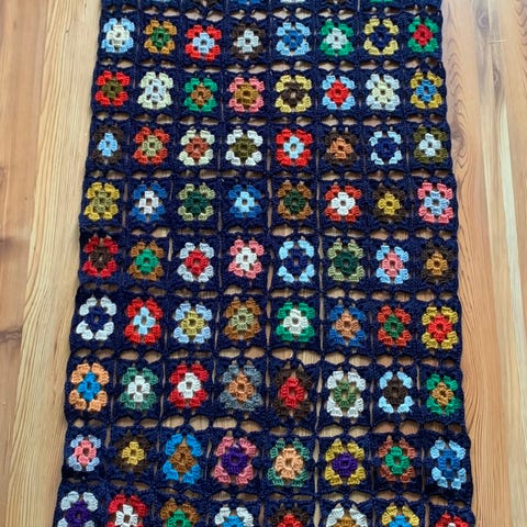 Heklet, hjemmelagde tepper til stoler. Selger to stk, helst samlet.