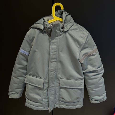 Fint vinterjakke vindtett / vannavstøtende fra HM. Lite brukt, blitt for liten dessverre. Refleksdetaljer. Avtakbar hette.