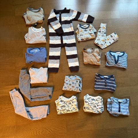 Anmerkninger som for eksempel nupper forekommer på flere av plaggene. Synlig brukt men mye bruk igjen. Selges derfor billig.