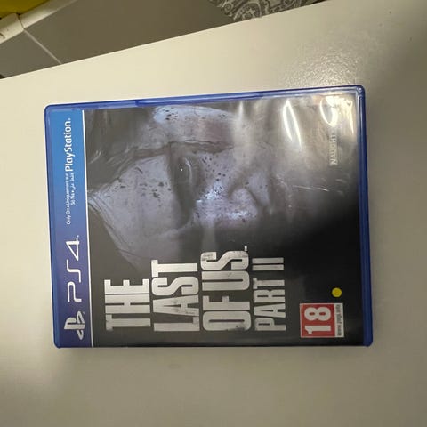 PlayStation 4 The Last of Us Part II spill. Fysisk utgave på Blu-ray for PS4-konsoll. Spillet er merket 18-års aldersgrense (PEGI 18). Sjanger er action og eventyr i et postapokalyptisk miljø, med fokus på historie og enspilleropplevelse.