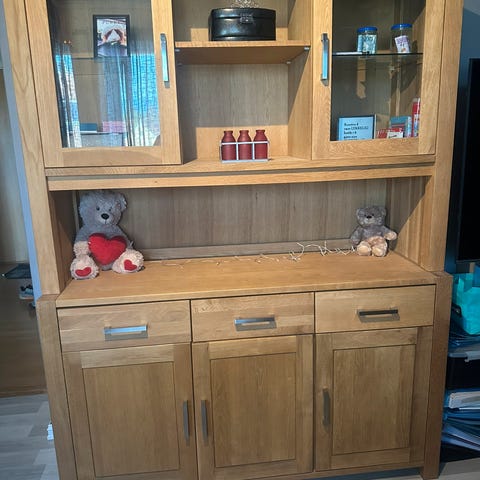 Meget pent vitrineskap i heltre eik selges. Ingen bruksmerker.