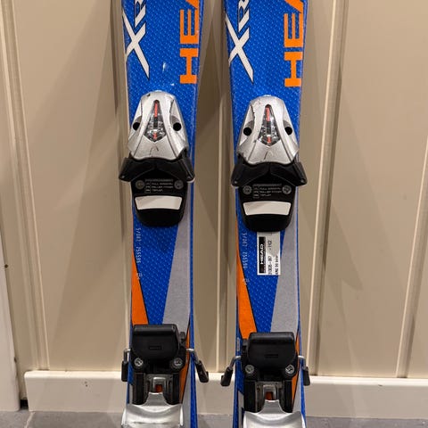 Head alpinski med integrerte bindinger i hvit og rød farge. Skiene har midtmonterte alpinbindinger som kan justeres etter støvellengde. Egner seg til bruk i alpinbakke for generell skikjøring.