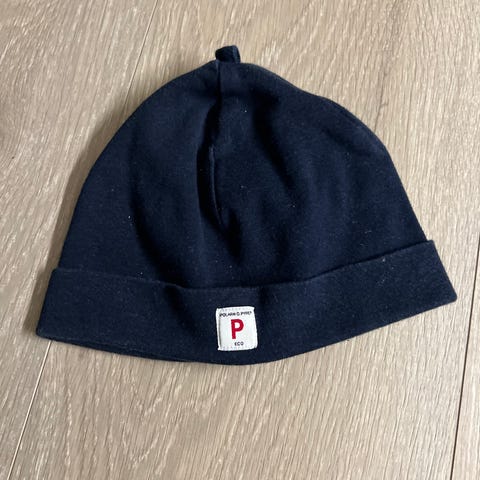 Polarn O. Pyret babylue i merinoull i grå farge. Luen er i størrelse 4 - 9 måneder (ca. 44/46 cm). Modellen har knyting under haken for å sitte godt på hodet. Materiale: 100 % merinoull. Utsiden er glatt, mens innsiden har litt mer tekstur, noe som isolerer og varmer.
