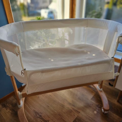 IKEA sprinkelseng i hvit utførelse. Klassisk barneseng med tette gavler og sprosser på langsidene. Madrass medfølger. Sengen er montert feil på bilde så de vinklene på toppen av rekkverket skal vær nede mot gulvet. Mangler en pynte vinkel. (Sengekant medfølger ikke)