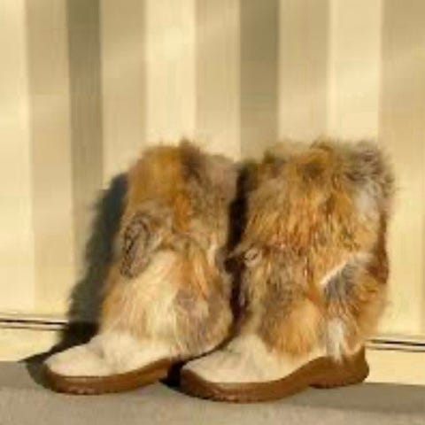 UGG støvler i størrelse 39. Støvlene er laget i brun semsket skinn med lys, myk fôring langs kantene og innvendig. Modellen har middels høy hæl og kan brukes både med oppbrettet og nedbrettet skaft. Egnet som varme og komfortable hverdagssko i kaldere vær.