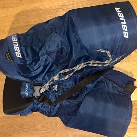 Bauer X900 ishockeybukse for junior i størrelse S/P (Small). Buksen har Tapered Fit-passform og er beregnet for høyde ca. 130–140 cm. Farge blå med polstret beskyttelse rundt hofter, lår og ryggparti. Justerbart belte og seler for bedre passform. Egnet til bruk på ishockeytrening og kamp for juniorspillere.