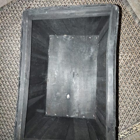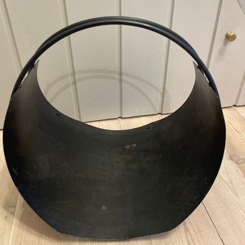 Ubrukt, tung oval vedkurv selges. Står fortsatt med plast på.