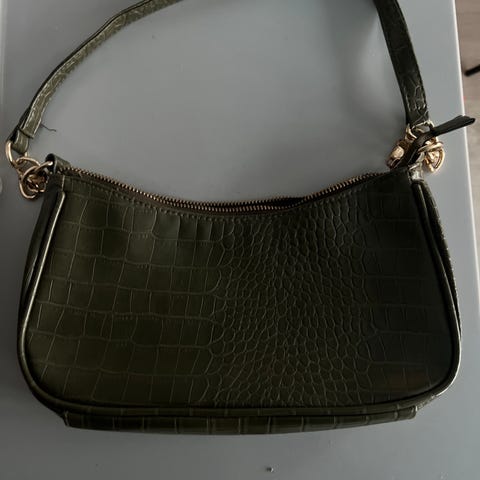 Monki skulderveske i kunstlær for dame. Vesken er i lys lilla farge med preget krokodillemønster. Justerbar skulderrem i samme materiale og farge. Lukkes med glidelås på toppen. Innvendig hovedrom med tekstilfôr. Egnet som liten hverdagsveske eller til enkel oppbevaring av nødvendigheter som mobil, nøkler og lommebok.