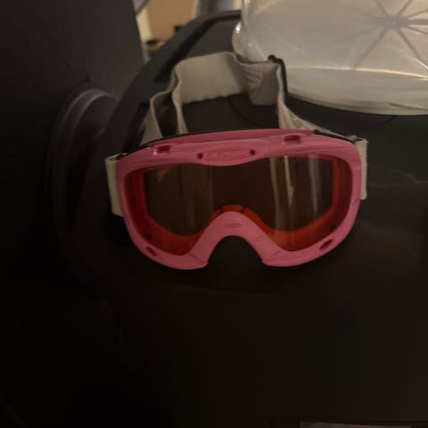 Kongsberg Skisenter skibriller i rosa farge. Brillene har stor linse med speilglass og bred, justerbar stropp med Kongsberg Skisenter-logo. Egnet til bruk i alpinbakke og andre vinteraktiviteter der øyebeskyttelse mot vind og snø er nødvendig.