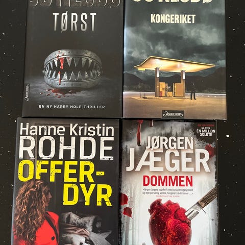 Gir bort 4 krim lydbøker på CD som avbildet. Pent behandlet. Sender gjerne i posten hvis mottaker dekker 60kr til porto (helst Vipps)