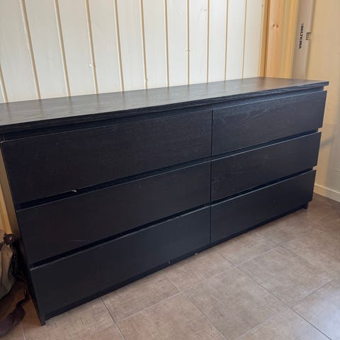 Pen kommode, men har 4 fukt flekker på overflaten og noen hakk. Se bilder