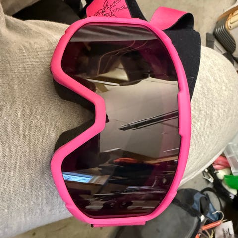 Kongsberg Skisenter skibriller i blå farge med speilglass. Brillene har bred elastisk stropp med Kongsberg Skisenter-logo og figurmotiv. Passer til bruk i alpinbakke og annen vintersport der det er behov for øyebeskyttelse mot vind og lys.