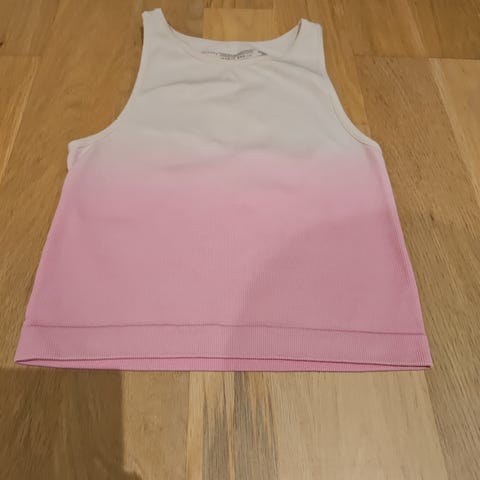 Primark tanktopp, dame i størrelse S. Toppen er hvit og laget av bomull og elastan. Den har ermeløs fasong og trykkmotiv på brystet.