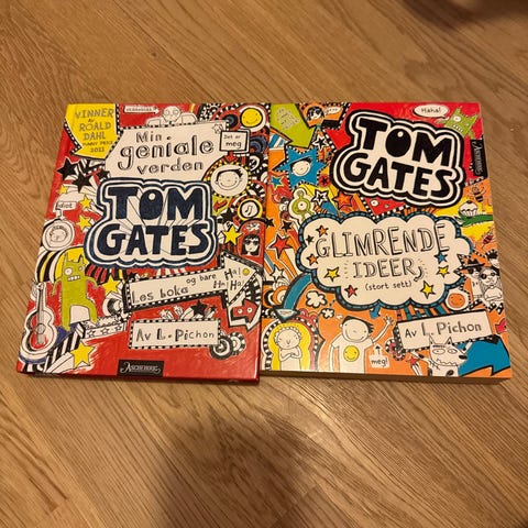 Tom Gates bokserie barnebøker på norsk i et sett med 4 bøker.
