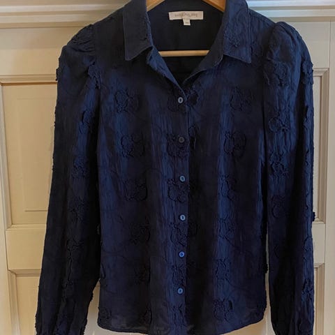 Lekker bluse med puffermer og krage fra Freequent. Størrelsen er en L, men denne vil jeg si er som en medium (40) Brukt maks 1-2 ganger og er som ny i stoffet. Nydelig kongeblå farge💙 Ved kjøp av 3 eller flere plagg så lager vi en pakkepris💙