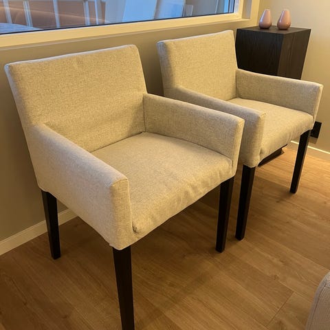 10 stk gule stoler fra IKEA. Godt brukt men fortsatt fine. Perfekt til både inne- og utendørs bruk. Selges grunnet nye stoler. Må hentes i Trondheim. Selges samlet.
