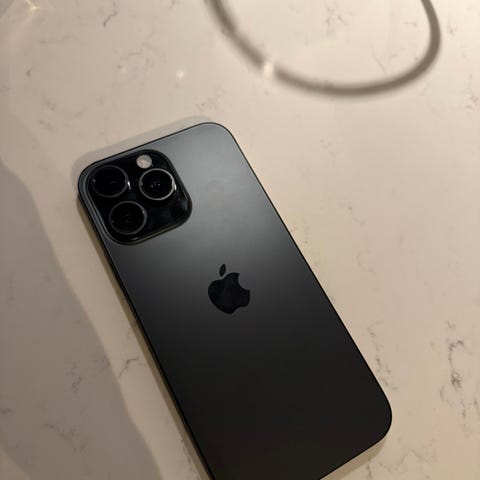 Selger pent brukt Apple iPhone 15 Pro Max mobiltelefon med 256 GB lagringsplass.