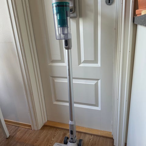 Let å bruke, man kan stå og støvsuge,enkelt å tømme og lade. Ny pris 1199.