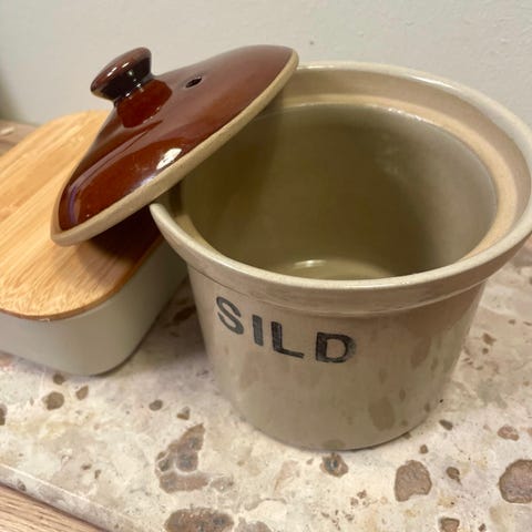 Denby England krukke med lokk i keramikk i beige farge. Krukken har rund form med rett sider og bred kant øverst, samt et matchende lokk og lite luftehull. Egnet til oppbevaring på kjøkkenet, for eksempel til krydder, salt , syltetøy, sild, smør eller til generell oppbevaring i hjemmet. Overflaten er glasert for enkel rengjøring.