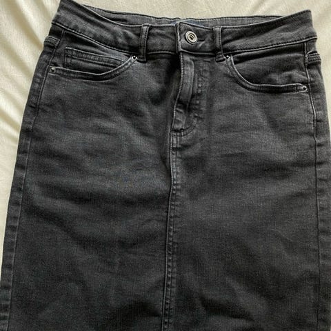 Sort miniskjørt med høyt liv, fra Bikbok. God stretch.