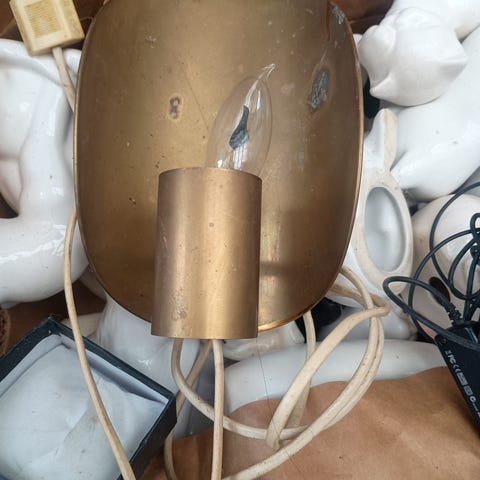 Gammel messing vegglamper I god stand. Selges for kr 200.