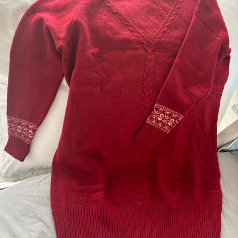 Normal i størrelse. Litt lang i ermene, men brettes opp.