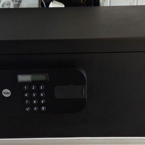 En skuff. Vekt på safe er 37,4 kg.