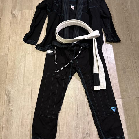Jujutsu- Scandinavian Frontline Academy kampsportdrakt for barn i størrelse 146. Drakten består av jakke og bukse i svart stoff med forsterkninger tilpasset kampsporttrening. Beltet som vises på bildet følger med dersom det er avbildet sammen med drakten. Egnet til bruk på kampsporttrening, for eksempel brasiliansk jiu-jitsu eller lignende disipliner for barn rundt størrelse 146.