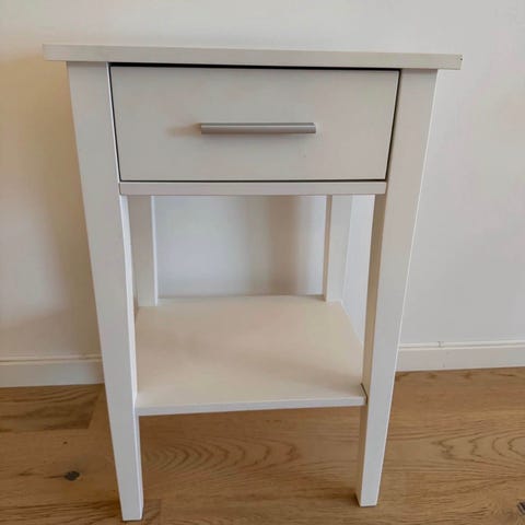 Eldre nattbord med liten skuff og hylle selges for HBO 250kr. Er godt brukt, og bør males.