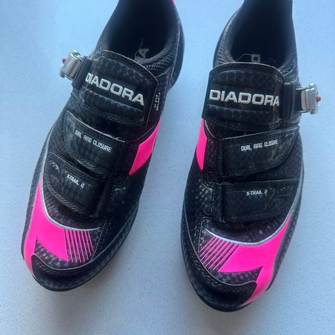Komfortable allround landevei-/pendlersko med snøring og stiv såle (ikke toppkarbon), perfekt til trening, rulleøkter eller transport. Skoene er aldri brukt og fremstår som nye.
