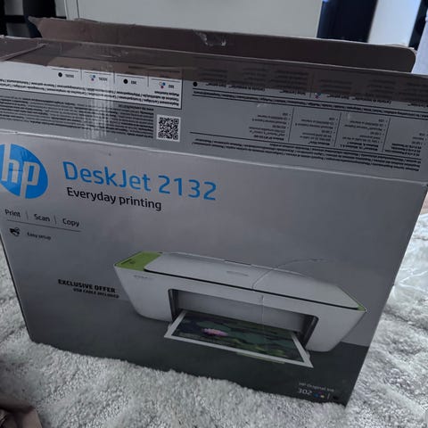 Esken er åpnet, men printeren er aldri brukt.