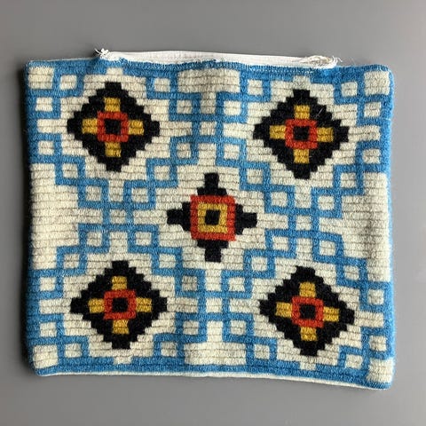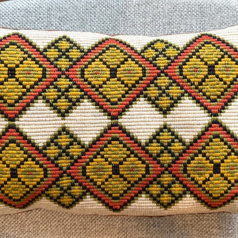 håndarbeid - håndbroderi - husflid - håndsøm - håndsydd - håndlaget - pyntepute - sofapute - norsk design - klostersting - klosterbroderi - retro pute - vintage pute - fjellhytte - hytte interiør