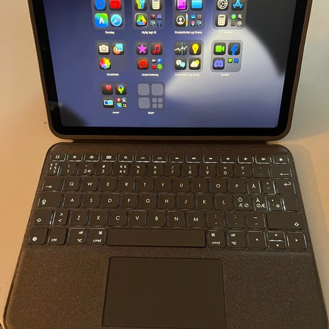Pent brukt Apple iPad 8. gen med 32 GB lagring. Det følger med Logitech Touch Combo tastatur med styreplate/trackpad.