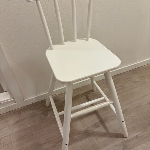 Sengehesten har lys eikefolie på,. Folien er hel, men litt bobler pga matt underlag, ser ok ut og kan fint brukes som den er. Kan fjernes og male sengehesten på nytt om en ønsker.