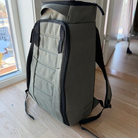 Sekk i stoff for unisex. Sekken har klassisk rektangulær form med bærehåndtak på toppen og justerbare skulderstropper. Hovedrommet har stor glidelåsåpning og et innvendig rom med sittepute. På forsiden er det en mindre glidelåslomme for småting. Egner seg til hverdagsbruk, skole eller jobb.