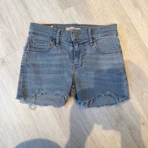 Levi's Premium jeans for dame i størrelse S med livvidde W28 og lengde 28. Buksen er hvit og laget av bomull. Klassisk femlommersmodell med knappelukking i gylfen. Veldig lite brukt, ingen bruksmerker utenom en minimal lys flekk nederst på benet bak (kan trolig vaskes bort).