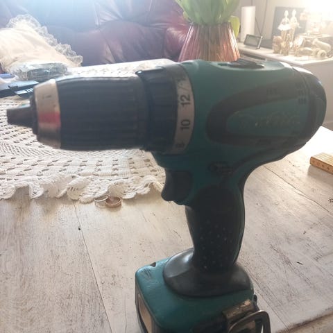 Defekt Makita drill. Tar ikke "tak" for å skru hverken inn eller ut. Kanskje noe kyndige får fikset.