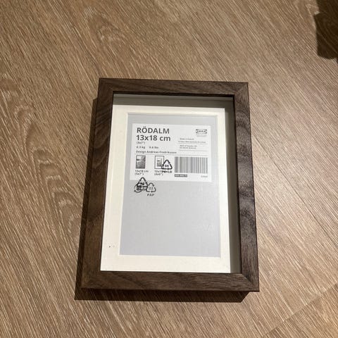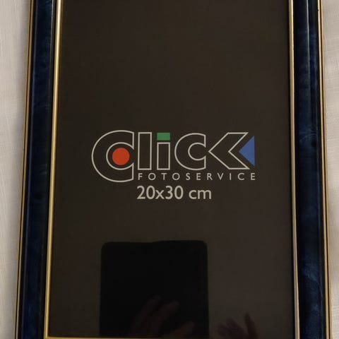 Bilderamme for tre bilder, str på rammen. 50 x 23 cm. Fin som ny.